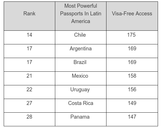 While English-speaking countries are falling in the rankings, many countries in Latin America have increased their passport strength in the Henley Passport Index 2025. Latin America was associated with political turmoil in the past, but this perception is changing quickly. Many countries in Latin America are improving their economy and political stability considerably, and their borders are being opened to expats. The power of their passports is one way to show the strength of these Latin American countries: