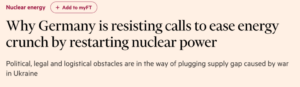 Yet Bernhard is far from alone in raising the issue. Germany decided to phase out nuclear power after Japan’s Fukushima disaster in 2011 and the last reactors were due to be shut down at the end of this year. But with EU sanctions now being imposed on Russia’s coal, and some demanding an embargo on its oil and gas, there are growing calls to plug the resulting energy gap with nuclear power.