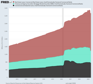 Growth Of Small Bank CRE loans, C&I loans and Treasury/Agency Debt Securities, 2014-2023