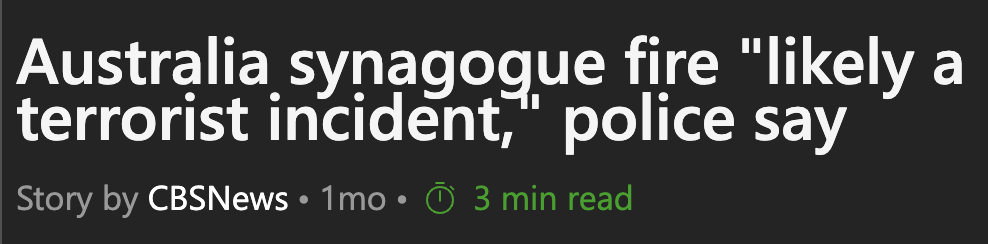 Coincidence or not, we simultaneously had a synagogue firebombed and the media are all over it like flies on isht, including Netenyahu calling it out. Wall to wall blanketed propaganda.