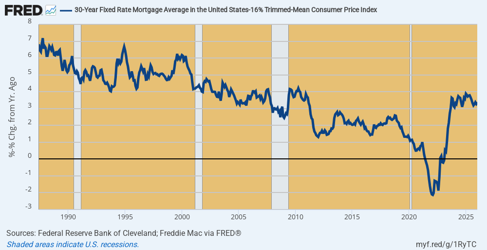 Inflation-Adjusted 30-Year Home Mortgage Rate, 1987 to 2025