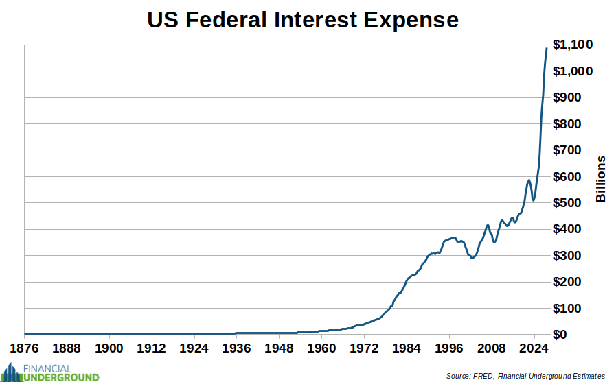Interest on the federal debt exceeded $1 trillion for the first time this year and is shooting higher.