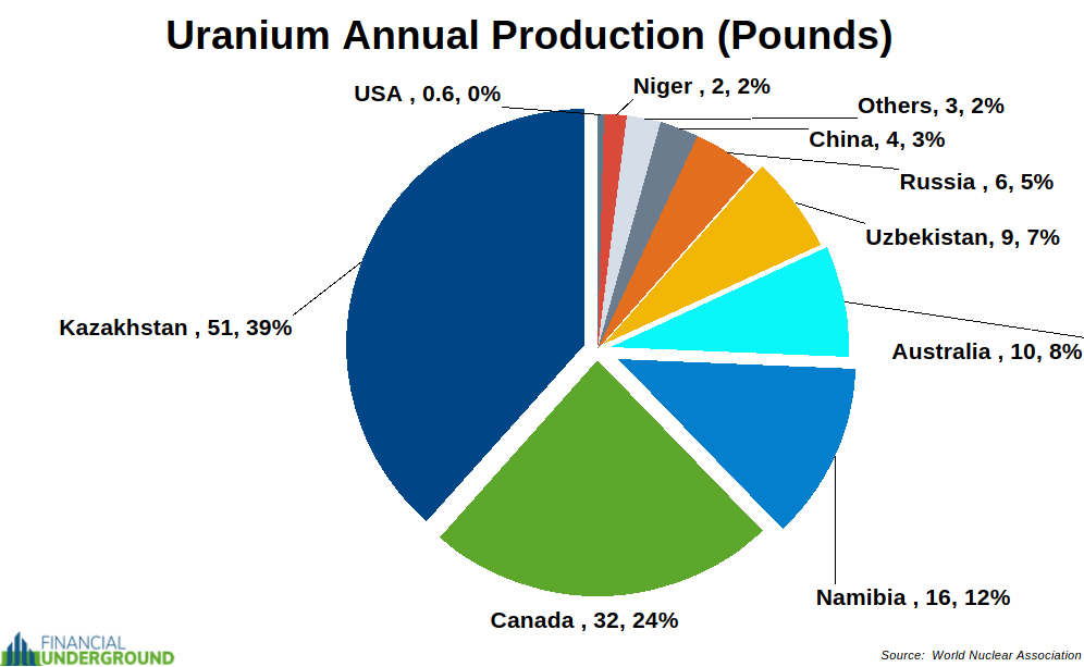 Each year, the world’s active nuclear power plants require approximately 174 million pounds of U₃O₈, commonly known as “yellowcake” to operate. This demand is inflexible, meaning power plants must secure that uranium or the lights go out.